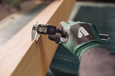 Nodurile sănătoase și aderente sunt acceptate în cantitate mică, cu diametrul <8mm. Nodurile putrezite sunt permise într-o cantitate mică, cu diametrul <2mm. Fisurile în lemn nu sunt permise. Deviația fibrei este acceptată, fără limite. Sunt permise ușoare variații de culoare. Sunt acceptate oglinzi ale lemnului într-o cantitate mică.