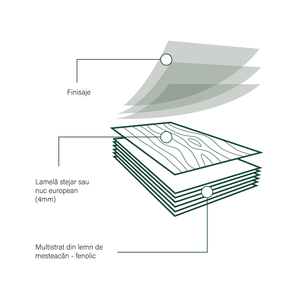 Oferă încântare oricărui spațiu datorită aspectului natural, creat prin evidențierea fibrelor lemnului prin procesul de structurare.